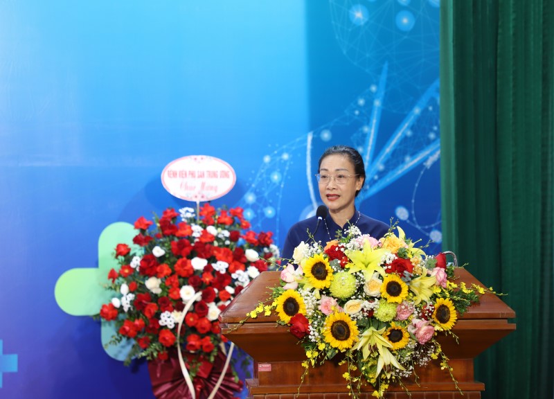 Bà Phạm Thanh Bình, Chủ tịch Công đoàn Y tế Việt Nam phát biểu khai mạc