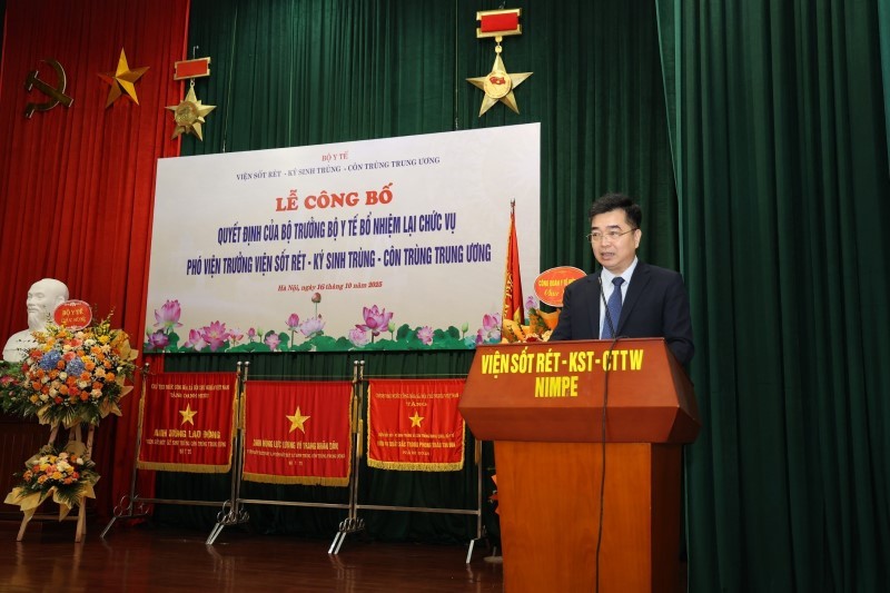 Sáng 16/10/2025, PGS.TS Nguyễn Thị Liên Hương, Thứ trưởng Bộ Y tế dự và trao Quyết định bổ nhiệm lại cán bộ tại Viện Sốt rét - Ký sinh trùng - Côn trùng Trung ương đối với Phó Viện trưởng Trần Quang Phục. Tham dự buổi lễ bổ nhiệm lại cán bộ còn có đại diện các Cục, Vụ, Văn phòng Bộ Y tế, các đơn vị trực thuộc Bộ Y tế, cùng tập thể lãnh đạo, cán bộ, người lao động Viện Viện Sốt rét - Ký sinh trùng - Côn trùng Trung ương.