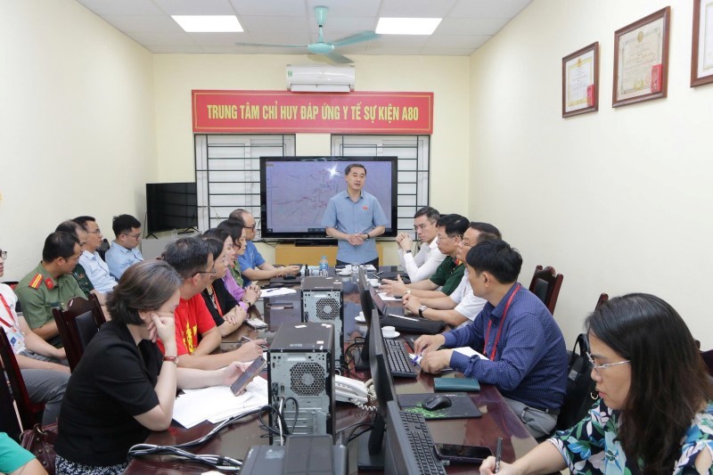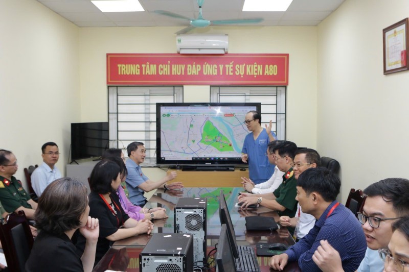 Tại Trung tâm Chỉ huy đáp ứng y tế sự kiện A80, đã thiết lập 01 phòng chỉ huy bao gồm lãnh đạo Bộ Y tế, Cục Quản lý Khám, chữa bệnh, Bộ Y tế, Cục Quân Y, Sở Y tế trực, có 2 đường dây điện thoại hữu tuyến để kết nối thông tin, chỉ huy, trang bị máy tính, bản đồ số tích hợp GPS, màn hình theo dõi diễn biến của cuộc diễu binh, diễu hành hệ thống bộ đàm chỉ huy và một phòng tiếp nhận xử lý thông tin gồm 12 người trực tổng đài, có hệ thống điện thoại analog dự phòng có thể tiếp nhận cùng lúc 12 cuộc gọi khẩn cấp. Trung tâm bố trí 5 xe cấp cứu và 10 xe được tập kết tại các Tổ y tế, sẵn sàng phục vụ công tác cấp cứu.