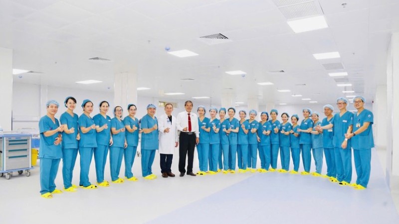 Y bác sĩ tại Bệnh viện Từ Dũ chào mừng công trình y tế mới.