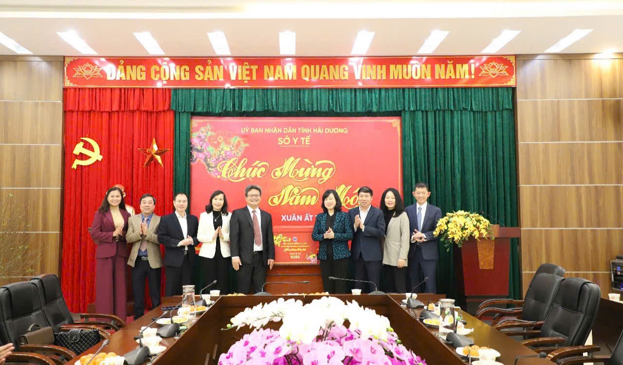 Đồng chí Đoàn Hữu Thiển, Chánh Văn phòng Bộ; đồng chí Vũ Thị Kim Anh, Phó chánh Văn phòng Bộ, tháp tùng Bộ trưởng Bộ Y tế Đào Hồng Lan thăm, động viên, chúc Tết tại Sở Y tế Hải Dương (nay là Hải Phòng) năm 2025