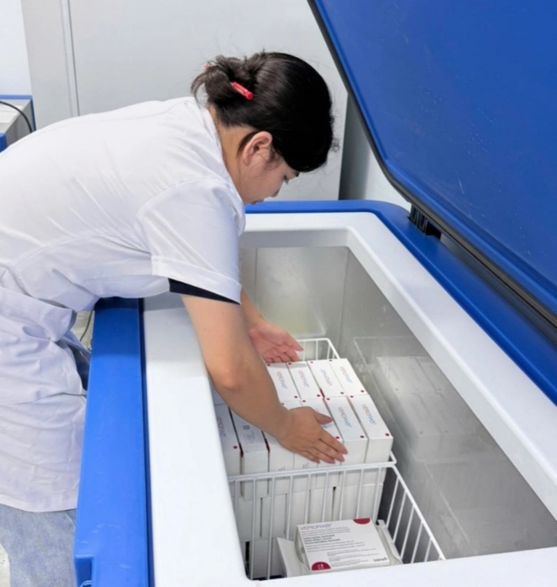 Một y tá đang sắp xếp vaccine phòng bệnh dại cho người do WHO hỗ trợ để giúp cứu sống những người có nguy cơ mắc bệnh dại do chó dại cắn tại hai tỉnh Tuyên Quang và Phú Thọ. Ảnh: Tuyên Quang CDC/ Hà Ngọc Hà.