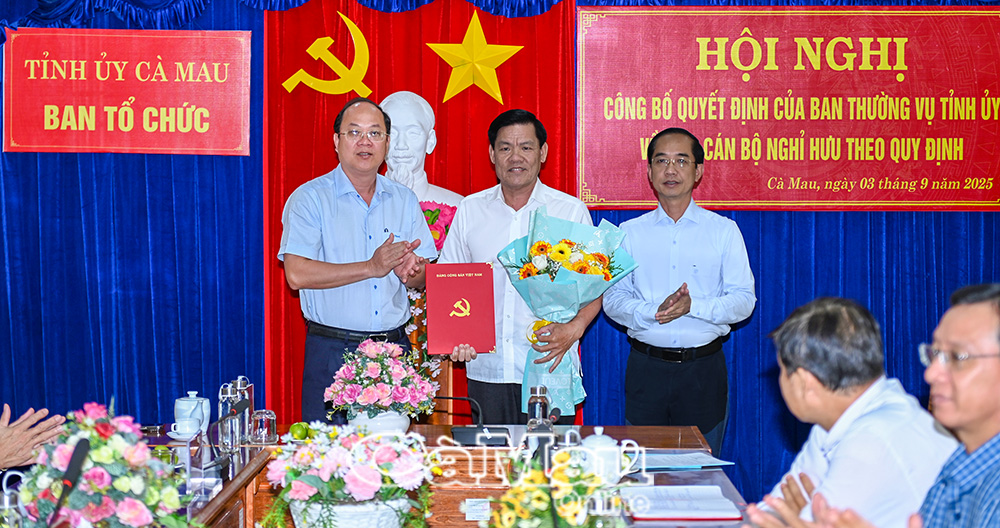- Công bố quyết định nghỉ hưu với 7 đồng chí nguyên cán bộ lãnh đạo tỉnh Cà Mau