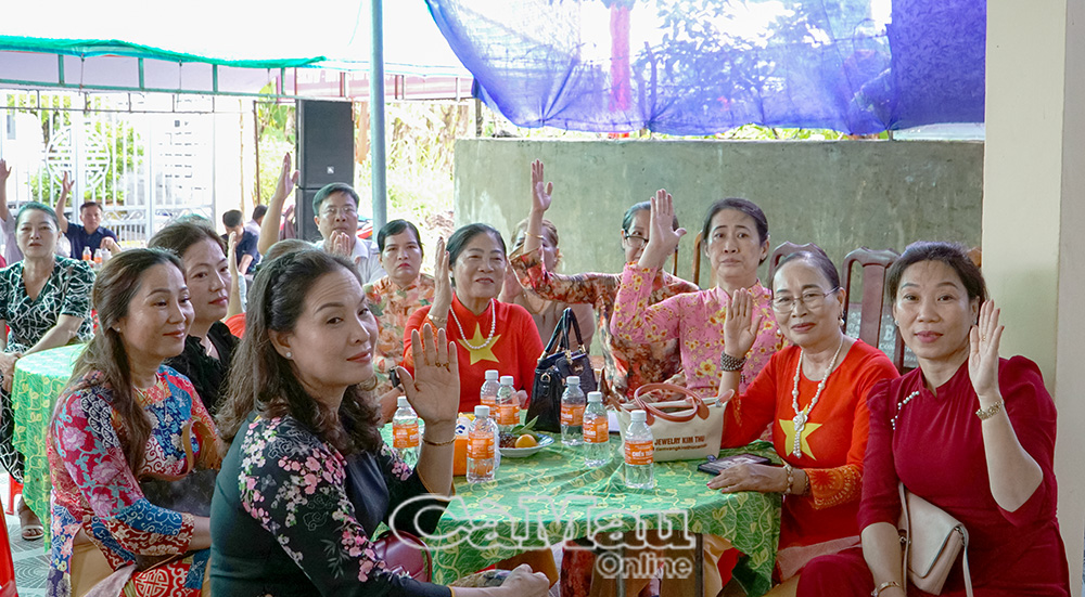 Người dân đồng tình biểu quyết các chỉ tiêu phấn đấu của khóm trong năm 2026.