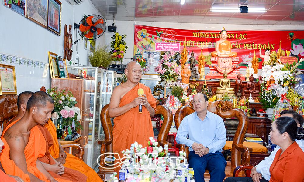 Hòa thượng Thạch Hà, Trưởng Ban Trị sự Giáo hội Phật giáo Việt Nam tỉnh, Chủ tịch Hội Đoàn kết sư sãi yêu nước tỉnh, trụ trì chùa Monivongsa Bopharam bày tỏ lời cảm ơn sâu sắc trước sự quan tâm, hỗ trợ của Đảng, Nhà nước và chính quyền địa phương dành cho đời sống của đồng bào Khmer. Hòa thượng khẳng định sẽ tiếp tục cùng chư tăng, phật tử phát huy tinh thần đoàn kết, tích cực tham gia phát triển kinh tế và hưởng ứng các phong trào, cuộc vận động do Đảng, Nhà nước và địa phương phát động.