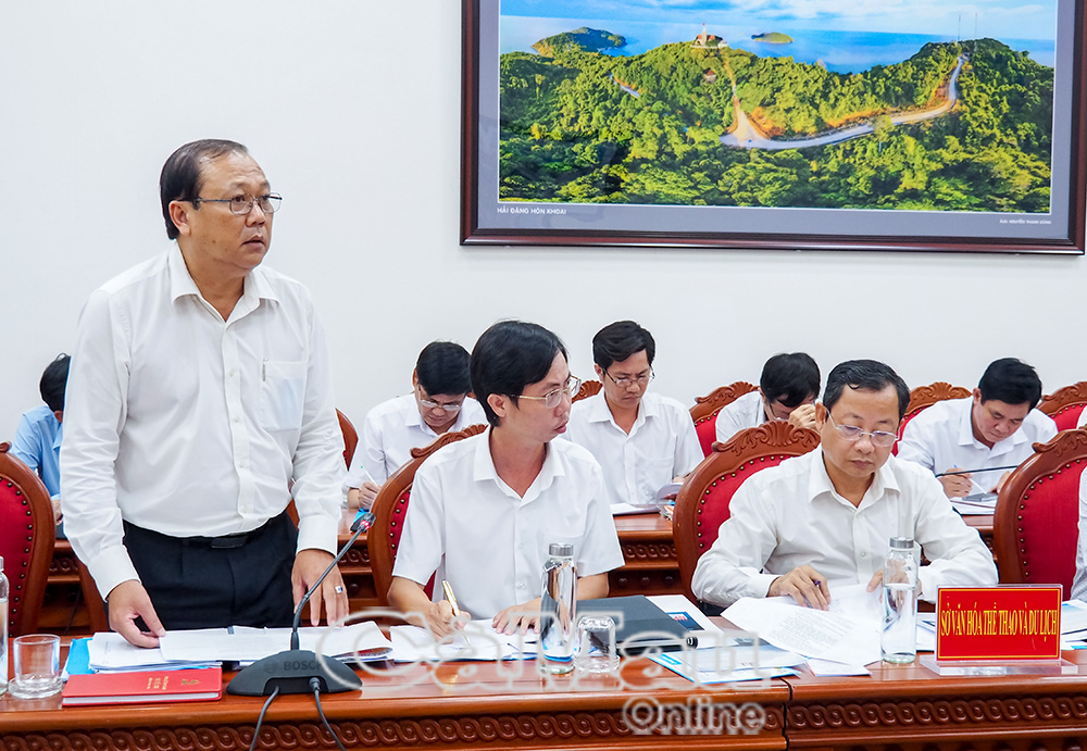 Phó Giám đốc Sở Văn hoá - Thể thao và Du lịch Nguyễn Văn Đen tỉnh báo cáo tiến độ thực hiện các hoạt động.