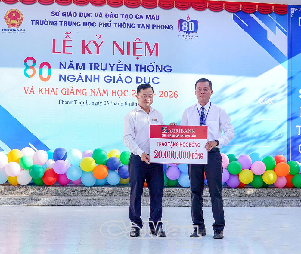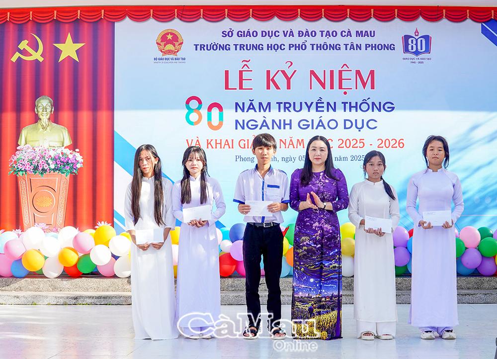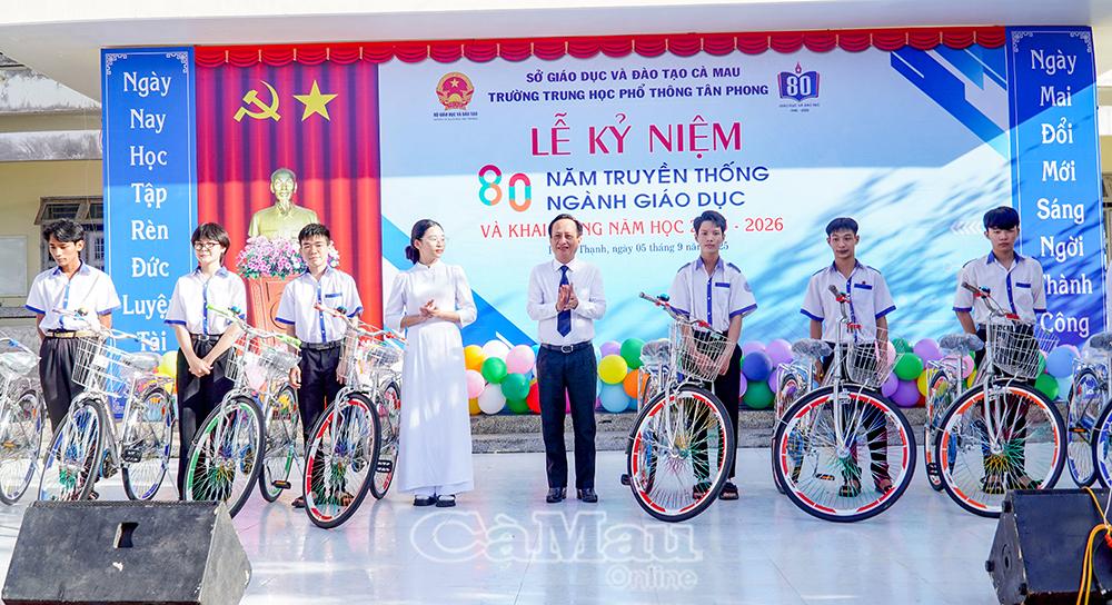 Tại lễ khai giảng, Quỹ Khuyến học Võ Văn Kiệt phối hợp với Sở GD&ĐT trao 20 suất học bổng (1 triệu đồng/suất) cho học sinh khó khăn. Đặc biệt, đồng chí Lữ Văn Hùng trao tặng 10 suất học bổng cho học sinh vượt khó đạt thành tích cao; Công ty Cổ phần Chế biến và Dịch vụ Thuỷ sản Cà Mau tặng 10 xe đạp cho học sinh nghèo. Nhà trường cũng trao bằng khen, phần thưởng cho học sinh đạt giải cao tại kỳ thi Học sinh giỏi quốc gia, Olympic 30/4, Tin học trẻ cấp tỉnh và khu vực.