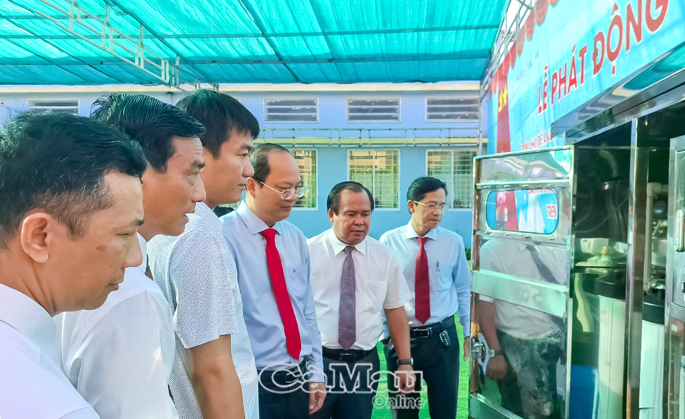 Lãnh đạo tỉnh khảo sát hệ thống nước sạch mới tại Trường Tiểu học Hòa Bình A.