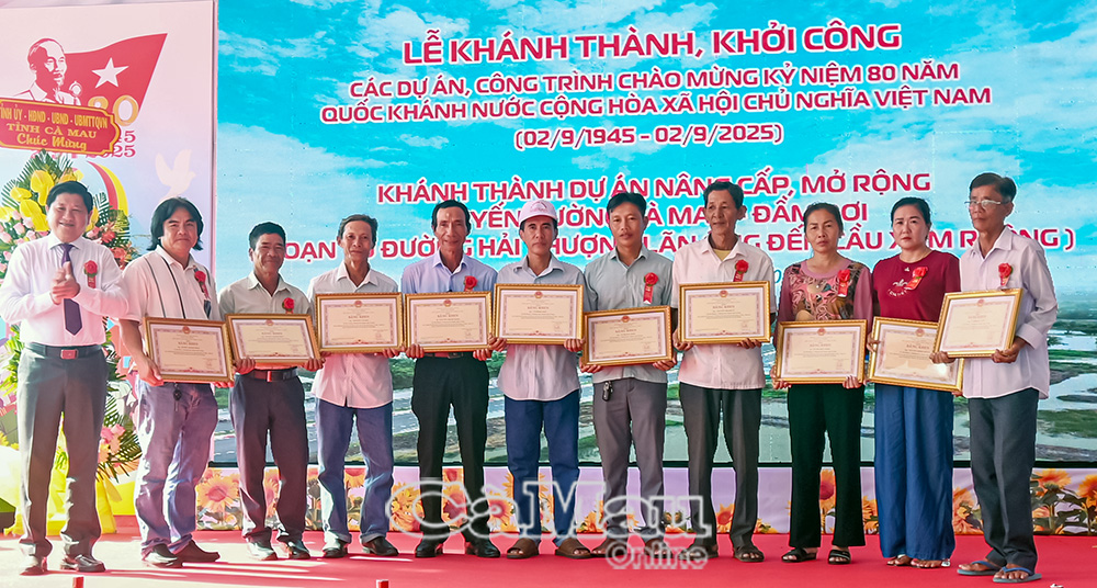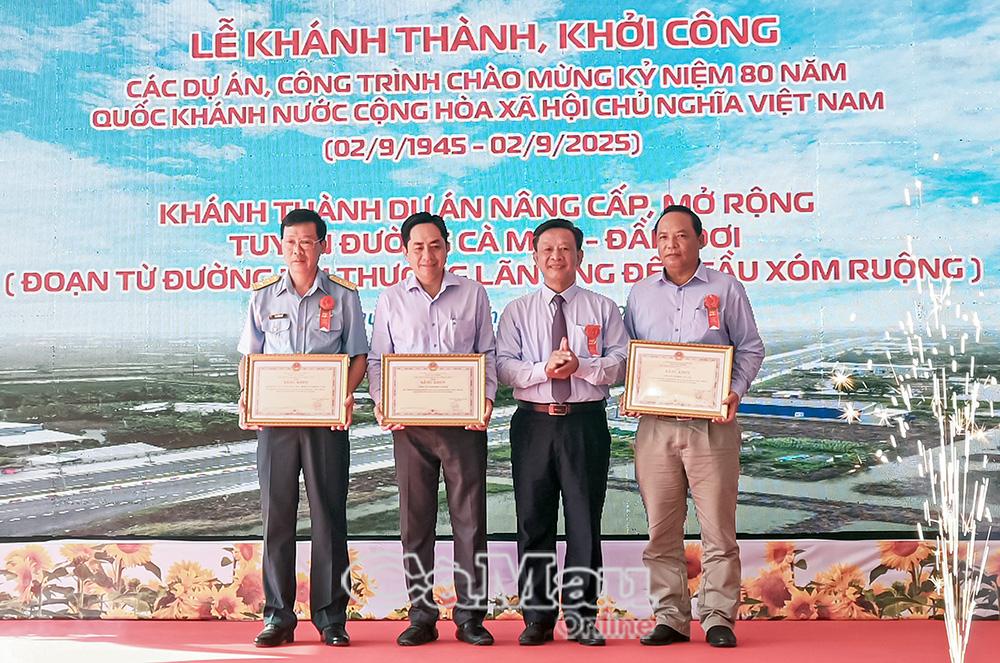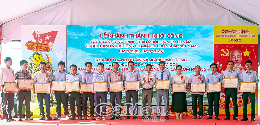 Dịp này, Chủ tịch UBND tỉnh Cà Mau đã trao Bằng khen cho 10 tập thể và 38 cá nhân có thành tích xuất sắc trong công tác giải phóng mặt bằng dự án cao tốc Cà Mau – Đất Mũi.