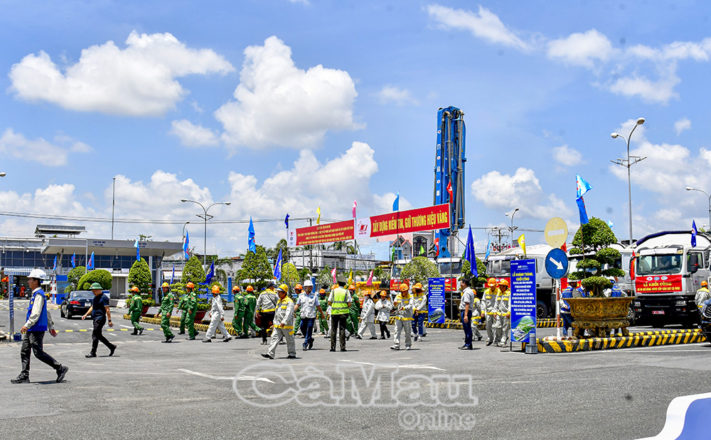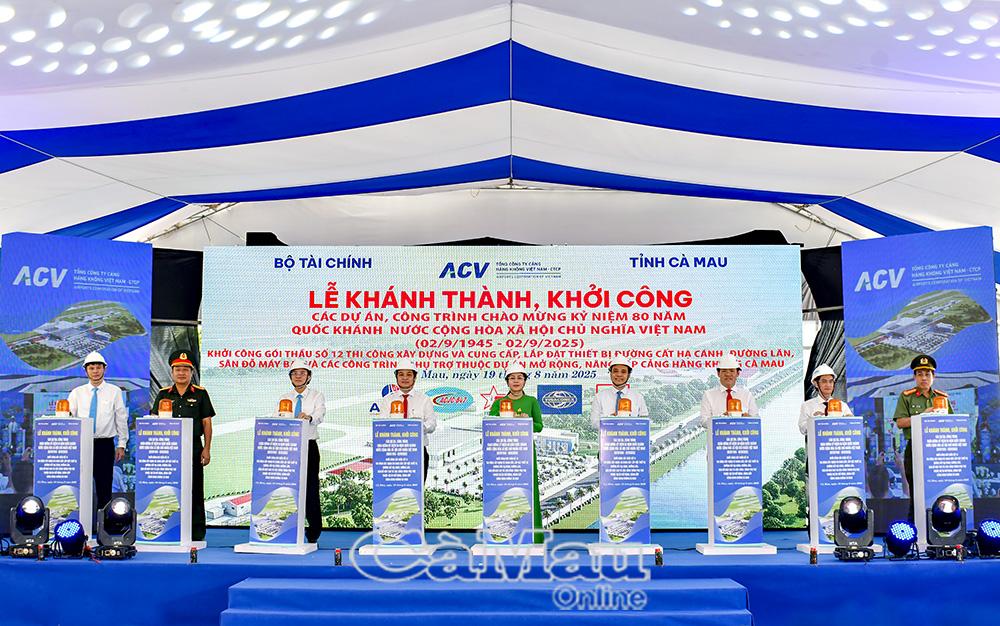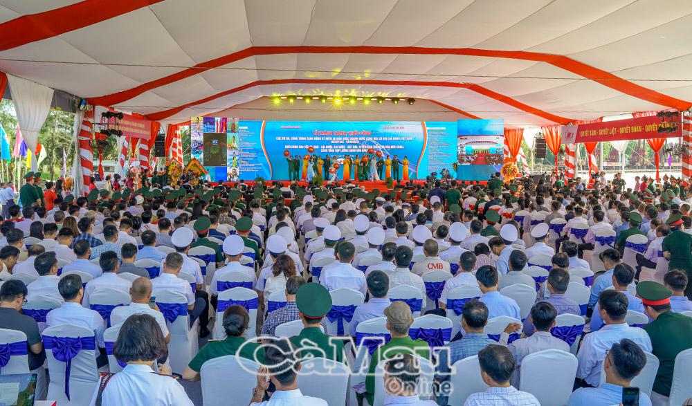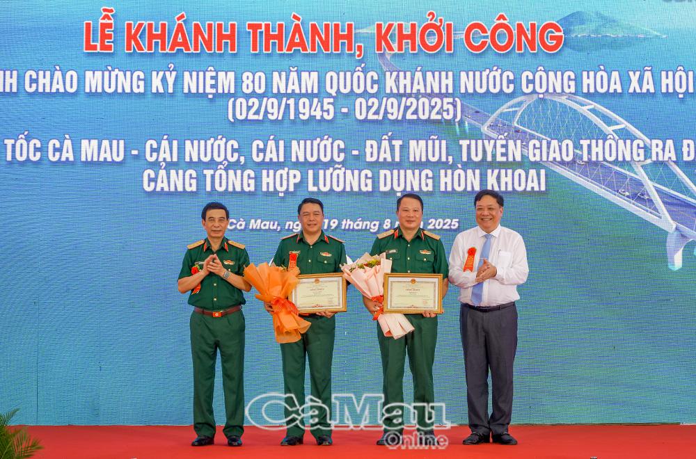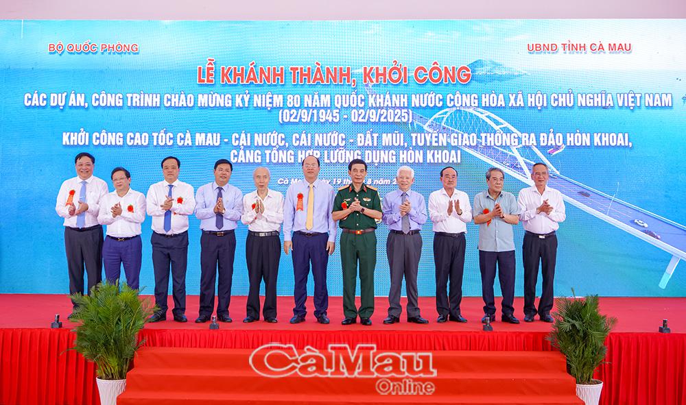 Trong không khí trang trọng và rộn ràng, các đại biểu Trung ương và địa phương đã thực hiện nghi thức khởi công 3 công trình trọng điểm: Tuyến cao tốc Cà Mau – Đất Mũi; đường ra đảo Hòn Khoai; và Cảng tổng hợp lưỡng dụng Hòn Khoai, cùng hòa nhịp với 250 công trình, dự án trọng điểm trên cả nước, chào mừng 80 năm Cách mạng Tháng Tám và Quốc khánh 2/9.