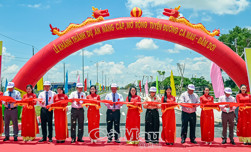 Các đồng chí lãnh đạo tỉnh đã thực hiện nghi thức khánh thành công trình giao thông Cà Mau – Đầm Dơi, chính thức đưa tuyến đường vào khai thác.
