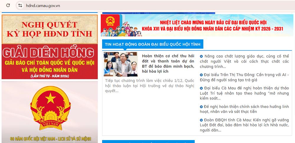 Trang thông tin điện tử HĐND tỉnh Cà Mau tuyên truyền về cuộc bầu cử.