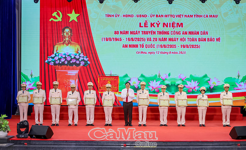 Dịp này, Chủ tịch UBND tỉnh Cà Mau tặng Bằng khen cho 8 tập thể, 11 cá nhân trong lực lượng Công an tỉnh có thành tích tiêu biểu, xuất sắc trong công tác tổ chức, triển khai thực hiện các hoạt động kỷ niệm 80 năm Ngày truyền thống CAND Việt Nam và 20 năm Ngày hội toàn dân bảo vệ an ninh Tổ quốc trên địa bàn tỉnh.