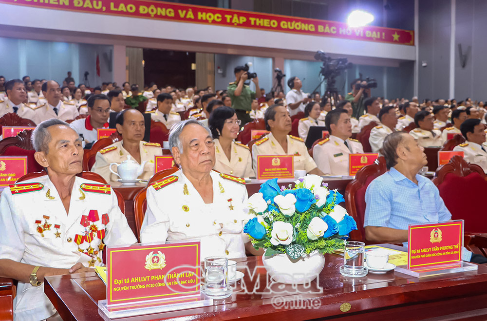 Tại buổi lễ, các đại biểu cũng được ôn lại truyền thống lực lượng CAND Việt Nam nói chung, Công an tỉnh Cà Mau nói riêng qua các thước phim tư liệu phản ánh chặng đường 80 năm xây dựng, chiến đấu và trưởng thành. Là một bộ phận của CAND Việt Nam, chỉ 2 ngày sau khi giành được chính quyền, Công an Cà Mau được Tỉnh uỷ, Uỷ ban giải phóng tỉnh quyết định thành lập vào ngày 25/8/1945 với tên gọi “Quốc gia tự vệ cuộc”. Những ngày đầu mới thành lập, lực lượng còn nhỏ bé, nhiệm vụ nặng nề, lại phải đối phó với những kẻ thù sừng sỏ và nguy hiểm, nhưng lực lượng Công an Cà Mau đã lập nhiều chiến công xuất sắc trong các cuộc chiến khốc liệt chống thực dân Pháp và đế quốc Mỹ.