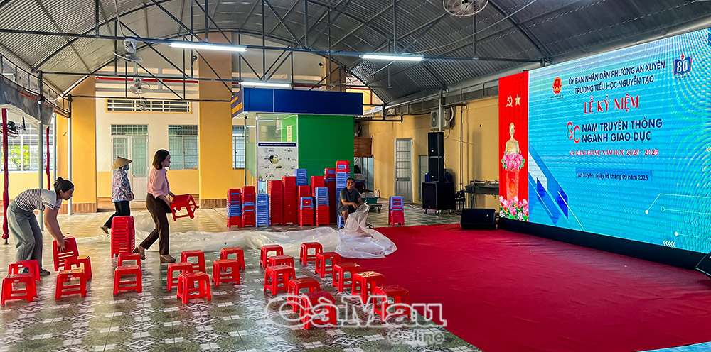 Những ngày qua, các cơ sở giáo dục ở Cà Mau tất bật hoàn thiện khâu chuẩn bị. Hệ thống thiết bị, đường truyền, màn hình, âm thanh được kiểm tra kỹ lưỡng, sẵn sàng cho buổi lễ trực tuyến không bị gián đoạn.