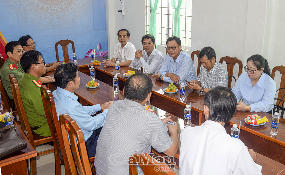 Phó Bí thư Tỉnh uỷ Cà Mau Hồ Thanh Thuỷ (bìa trái) cùng đoàn công tác kiểm tra tại Trạm Y tế xã Tam Giang.
