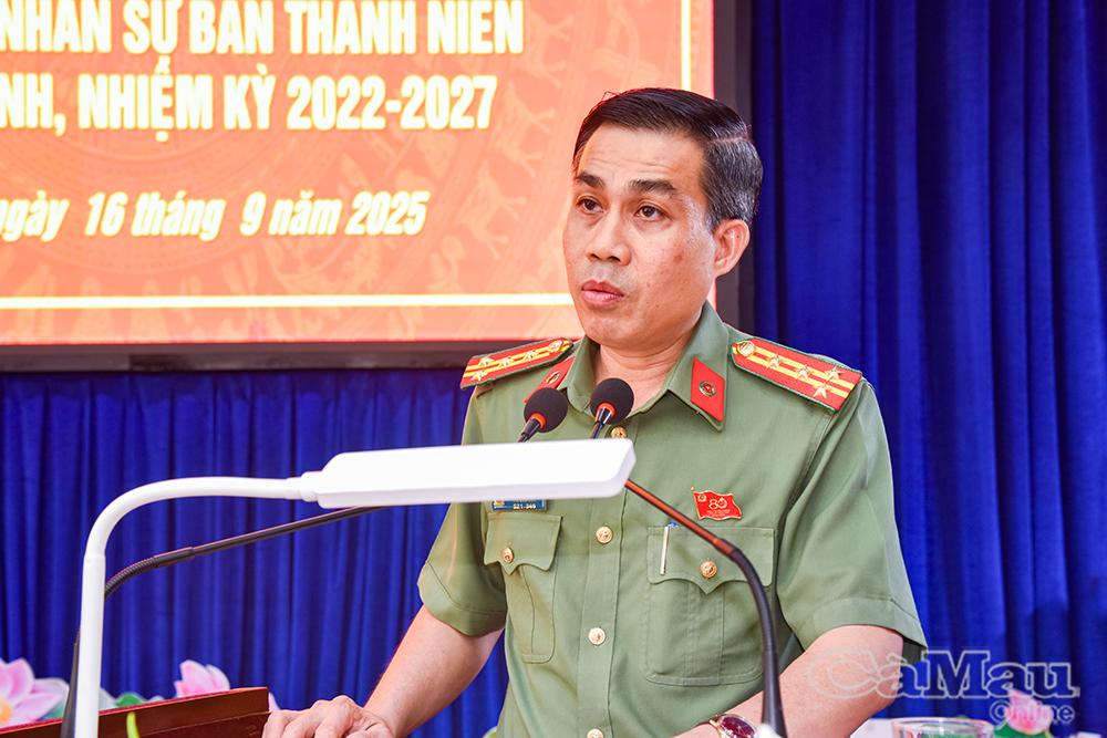 Tham dự có đồng chí Đại tá Lê Tấn Vinh, Phó Bí thư Đảng uỷ, Phó Giám đốc Công an tỉnh; đồng chí Trần Đăng Khoa, Phó Bí thư thường trực Tỉnh đoàn Cà Mau; cùng lãnh đạo Phòng Công tác chính trị và Bí thư các cơ sở Đoàn trực thuộc Công an tỉnh, Bí thư Chi đoàn Công an xã, phường.