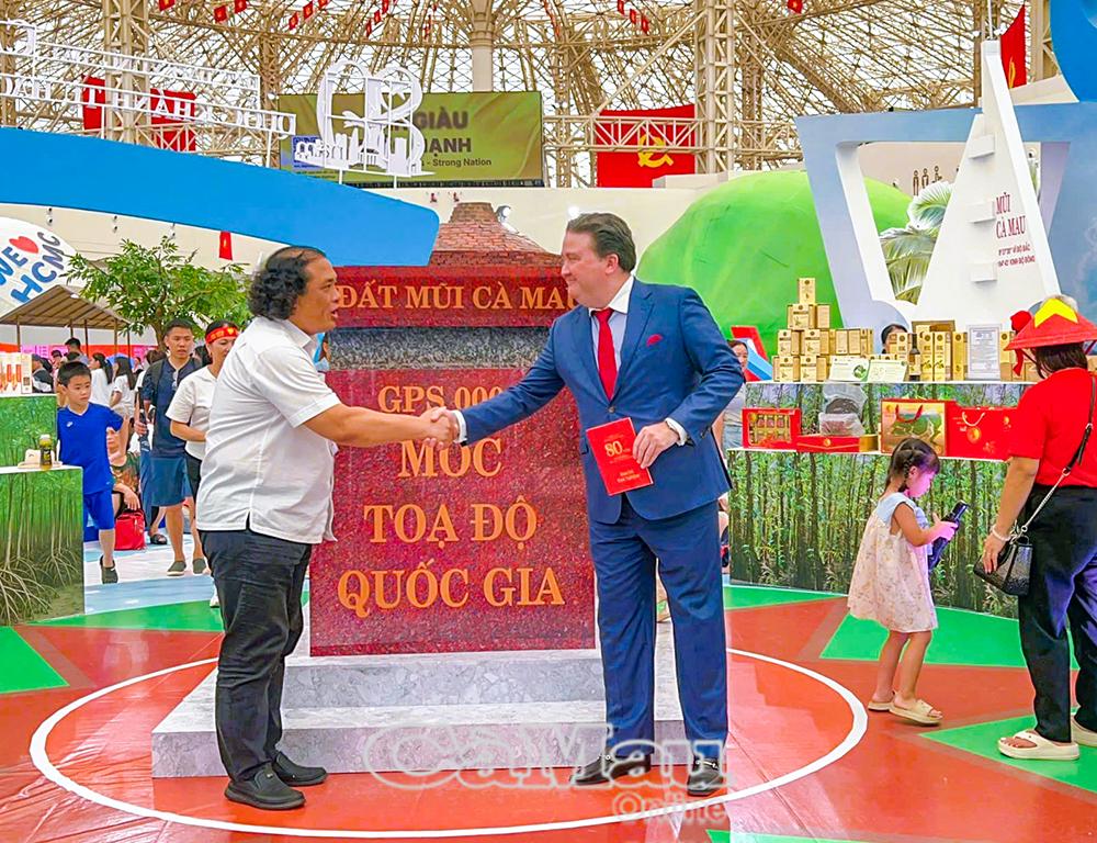 Khu trưng bày của tỉnh Cà Mau tại Triển lãm thành tựu đất nước chiều hôm nay (3/9) tiếp tục là điểm đến thu hút đông đảo khách tham quan. Nổi bật nhất là sự kiện đặc biệt: Ngài Marc E. Knapper, Đại sứ Hoa Kỳ tại Việt Nam, đến tham quan và trải nghiệm không gian trưng bày.