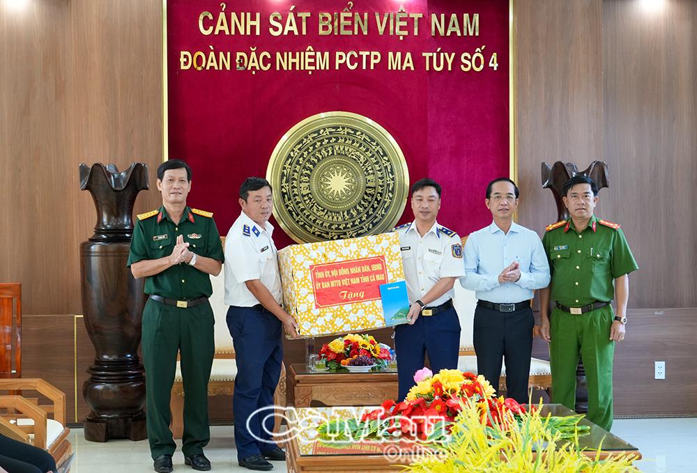 Phó Bí thư Tỉnh uỷ, Chủ tịch Uỷ ban Mặt trận Tổ quốc Việt Nam tỉnh Cà Mau Hồ Thanh Thuỷ tặng quà cho Đoàn Đặc nhiệm phòng, chống tội phạm ma tuý số 4.