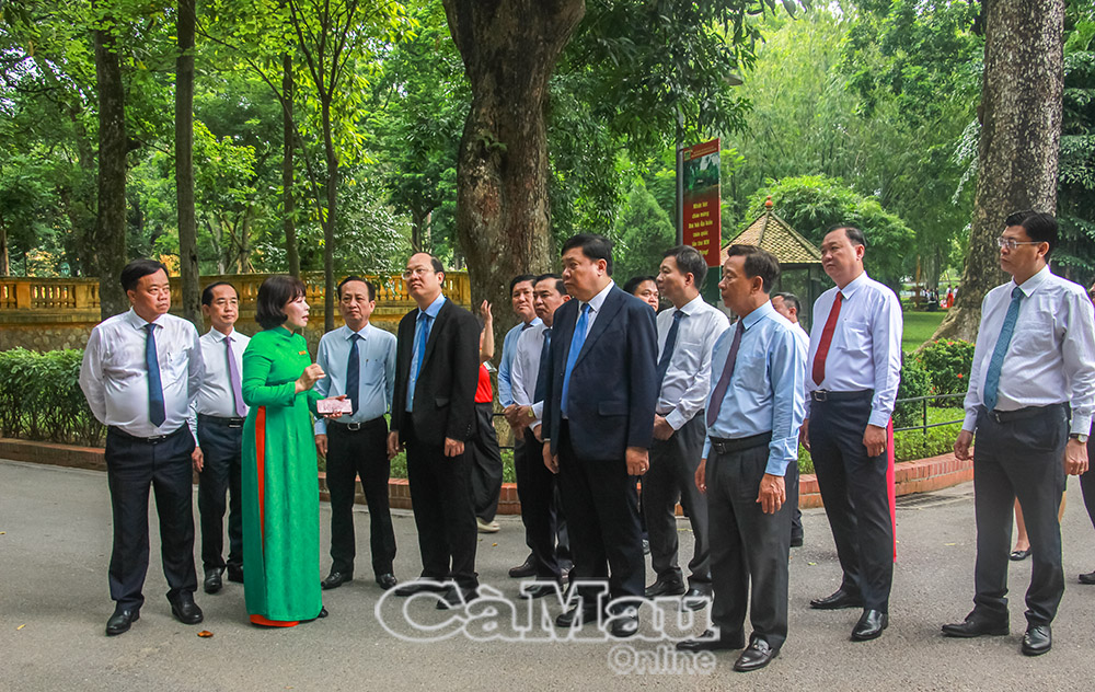 Sau khi vào Lăng viếng Bác, đoàn công tác Tỉnh uỷ Cà Mau tham quan, dâng hương tại Nhà H67 trong Khu di tích Chủ tịch Hồ Chí Minh tại Phủ Chủ tịch. Đoàn cũng dừng chân khá lâu tại khu vực Nhà sàn của Bác, nơi có cây vú sữa do Nhân dân Cà Mau kính tặng cách đây 70 năm, khi tập kết ra Bắc.