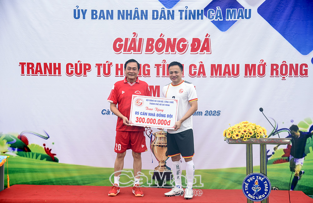 Tại buổi lễ, đội bóng đá cán bộ, công chức, viên chức TP Hồ Chí Minh đã trao tặng 5 căn nhà đồng đội (mỗi căn 60 triệu đồng) cho chiến sĩ lực lượng công an tỉnh Cà Mau; tặng 1 căn nhà đại đoàn kết trị giá 60 triệu đồng cho Uỷ ban MTTQ Việt Nam tỉnh Cà Mau.