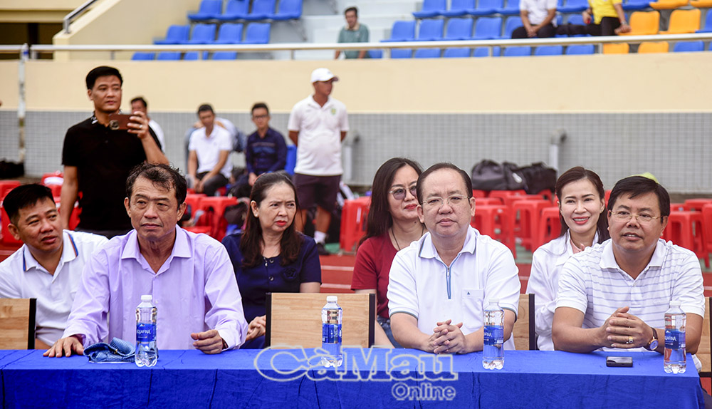 Các đồng chí lãnh đạo tỉnh Cà Mau dự khai mạc giải bóng đá.