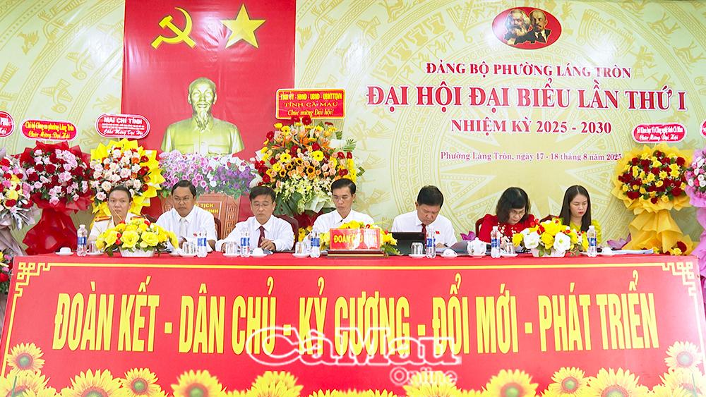Phát biểu chỉ đạo, đồng chí Lê Minh Ý, Phó Trưởng Ban Thường trực Ban Tổ chức Tỉnh uỷ, đề nghị ngay sau Đại hội, Đảng bộ phường Láng Tròn nhanh chóng ổn định tổ chức, xây dựng khối đoàn kết, thống nhất, xem đây là nhiệm vụ then chốt, quyết định. Đồng chí nhấn mạnh phường cần tập trung phát triển kinh tế – xã hội, nâng cao đời sống Nhân dân; khai thác hiệu quả lợi thế về giao thông thuỷ - bộ, diện tích nông nghiệp, nuôi trồng thuỷ sản, nhất là mô hình tôm – lúa, tôm siêu thâm canh; phát huy tiềm năng thương mại, dịch vụ, công nghiệp chế biến gắn với vùng nguyên liệu.