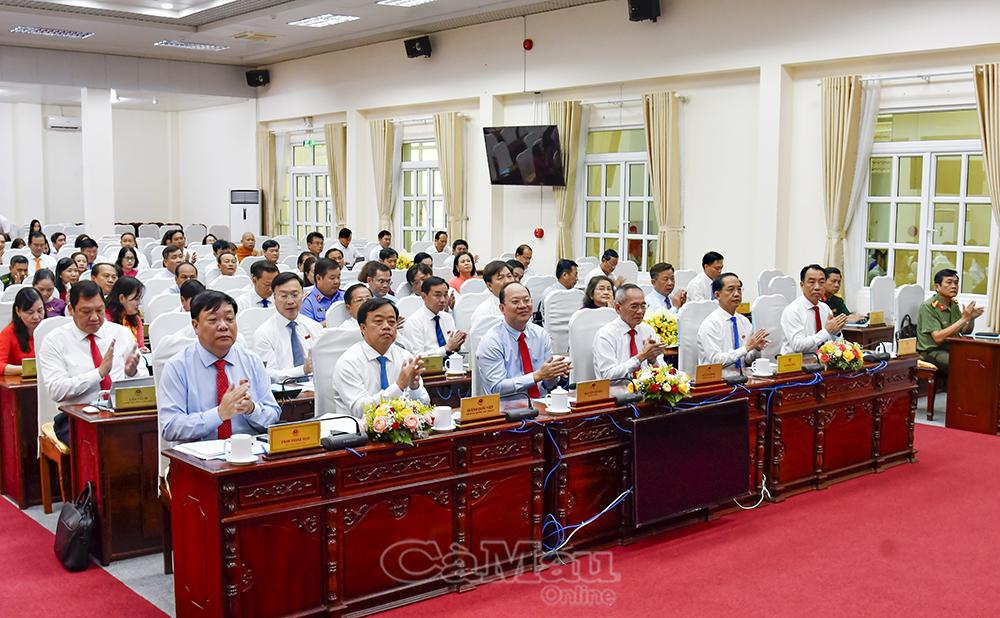 Các đồng chí lãnh đạo tỉnh Cà Mau chúc mừng đồng chí Phạm Thành Ngại và đồng chí Lữ Quang Ngời.