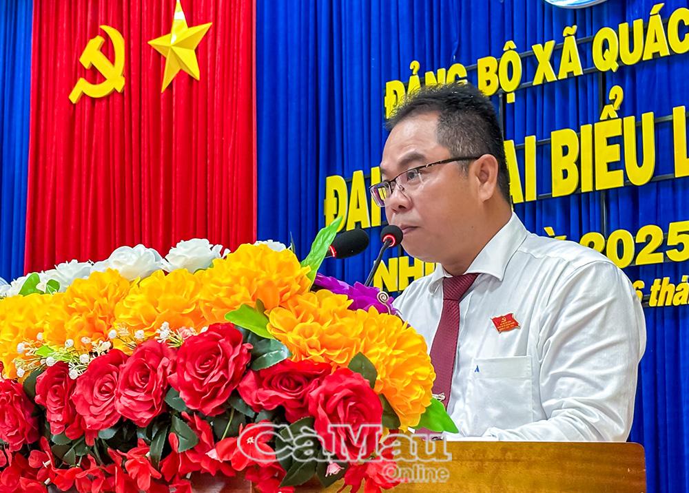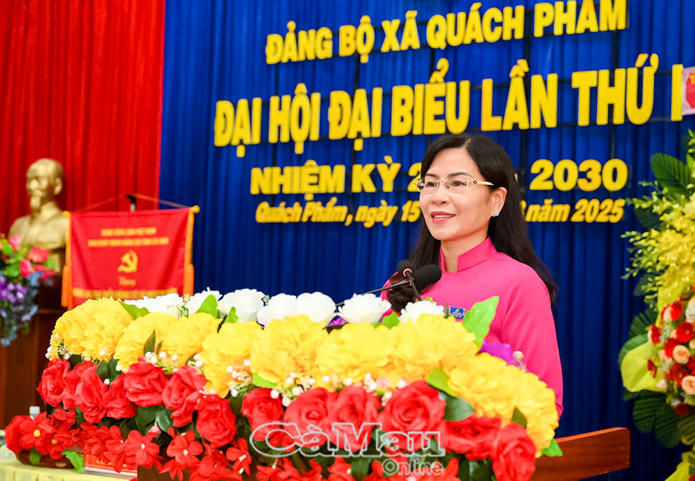 Phát biểu chỉ đạo, Phó Chủ tịch Thường trực HĐND tỉnh Cà Mau Lê Thị Nhung, biểu dương những kết quả nổi bật mà Đảng bộ, chính quyền và Nhân dân xã Quách Phẩm đạt được trong nhiệm kỳ qua. Đồng chí đề nghị Đảng bộ xã tiếp tục tập trung phát triển kinh tế – xã hội, nâng cao đời sống Nhân dân, khai thác hiệu quả tiềm năng, lợi thế địa phương; đồng thời chú trọng an sinh xã hội, chăm sóc sức khỏe, phát triển văn hóa – giáo dục, quyết tâm xây dựng xã đạt chuẩn nông thôn mới.