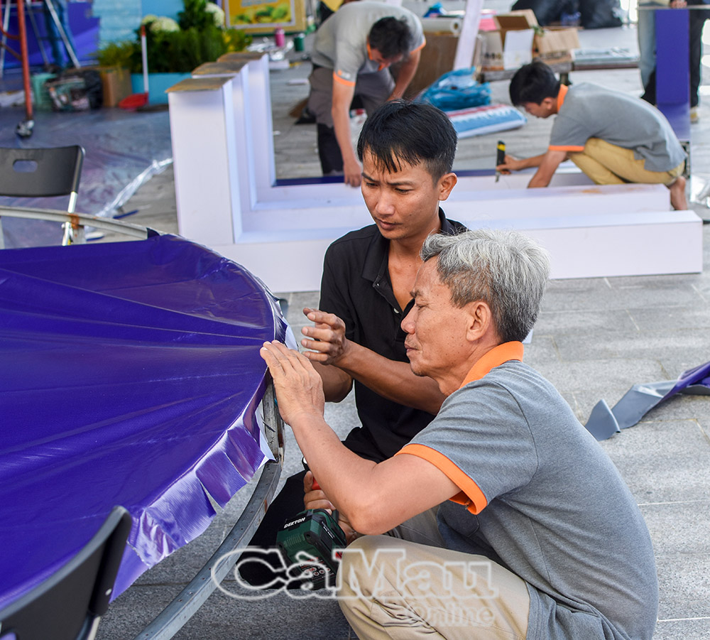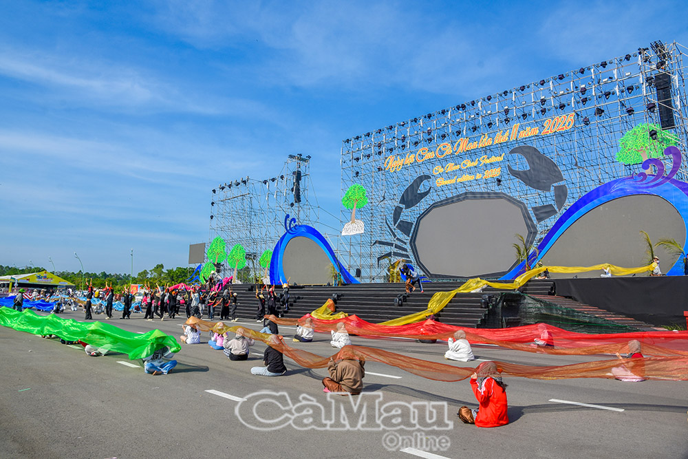 Ghi nhận tại Quảng trường Phan Ngọc Hiển, nơi diễn ra lễ khai mạc và nhiều hoạt động trọng điểm, các đội thi công đang gấp rút lắp đặt, điều chỉnh hệ thống âm thanh - ánh sáng; các nghệ sĩ, diễn viên tích cực tập luyện dưới thời tiết nắng nóng. Công tác bố trí sân khấu, khán đài và không gian hoạt động đang được hoàn thiện theo đúng tiến độ.