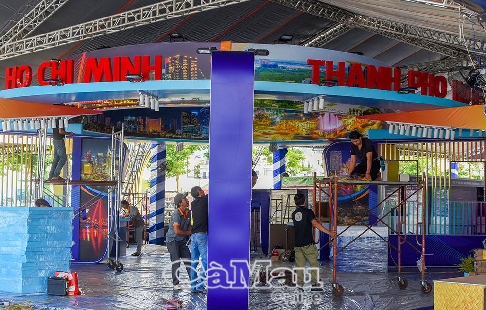 Tại các khu vực trưng bày và không gian ẩm thực, các gian hàng đã bước vào giai đoạn trang trí, sắp đặt sản phẩm đặc trưng. Nhiều đơn vị lựa chọn cách bày trí đậm sắc thái văn hoá địa phương, tạo không gian gần gũi và mang dấu ấn vùng đất địa đầu cực Nam Tổ quốc.