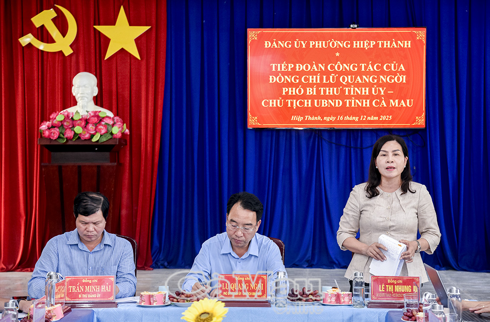 Báo cáo tại buổi làm việc, ông Lâm Danh Nhân, Chủ tịch UBND phường Hiệp Thành, cho biết, sau hợp nhất và triển khai mô hình chính quyền địa phương hai cấp, cả hệ thống chính trị của phường đã nỗ lực, quyết tâm thực hiện nhiệm vụ, đạt nhiều kết quả tích cực. Thu nhập bình quân đầu người trên 114 triệu đồng/năm; sản lượng thuỷ sản, giá trị sản xuất công nghiệp - tiểu thủ công nghiệp, phát triển doanh nghiệp đều vượt chỉ tiêu. Công tác cải cách hành chính, chuyển đổi số có nhiều chuyển biến. Phường đang triển khai 5 dự án trọng điểm, hướng tới mục tiêu xây dựng Hiệp Thành trở thành đô thị xanh, thông minh, bền vững vào năm 2030.