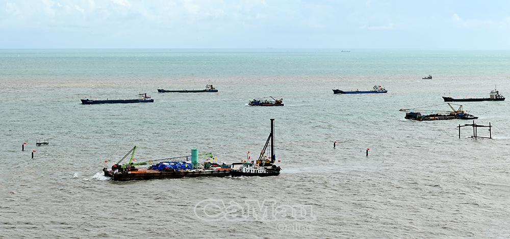 Trong điều kiện thời tiết trên biển cuối mùa mưa đầy bất lợi, sóng lớn, gió mạnh…, các lực lượng thi công vẫn hoàn thành đúc và đóng 31/31 cọc thử; đồng thời triển khai thi công các hạng mục phụ trợ, cọc thử D1200 dưới nước và cọc thử D1800. Tất cả đều được thực hiện bảo đảm an toàn hàng hải và các yêu cầu kỹ thuật, trong đó có công tác nhận chìm sản phẩm nạo vét.