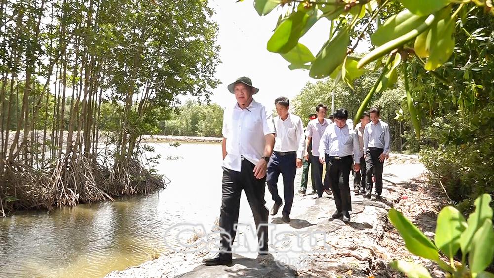 Phó Chủ tịch UBND tỉnh Cà Mau Lâm Văn Bi kiểm tra điểm dự kiến khởi công các công trình trọng điểm tại xã Đất Mũi.
