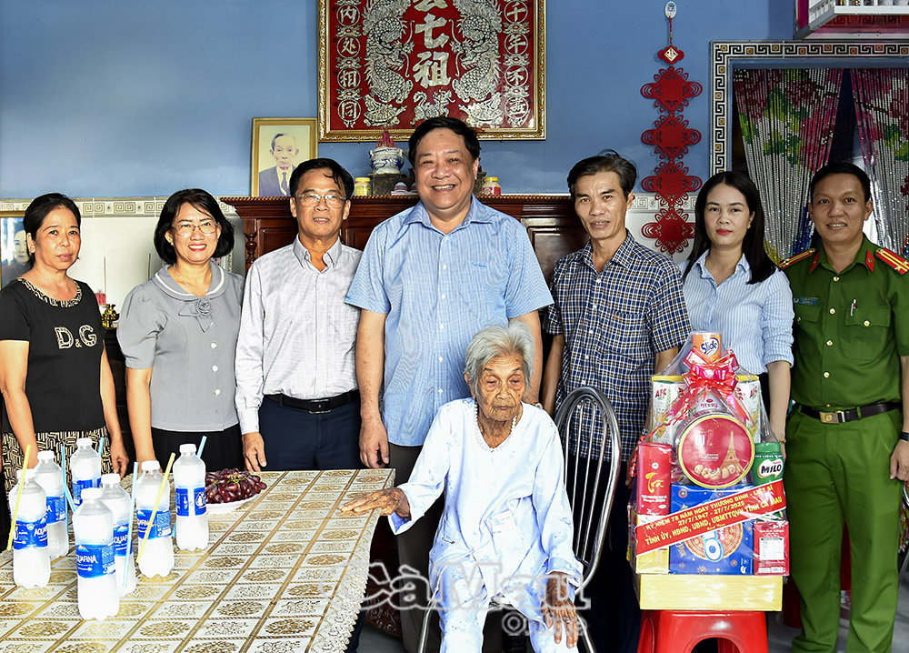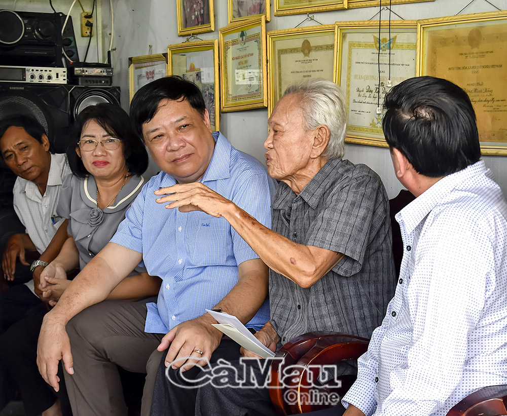 Cùng ngày, Đoàn lãnh đạo tỉnh còn đến thăm, tặng quà, chúc sức khỏe đồng chí Hồ Văn Phố, Huân chương kháng chiến hạng Nhì, ấp Tân Tạo, xã Vĩnh Lợi.