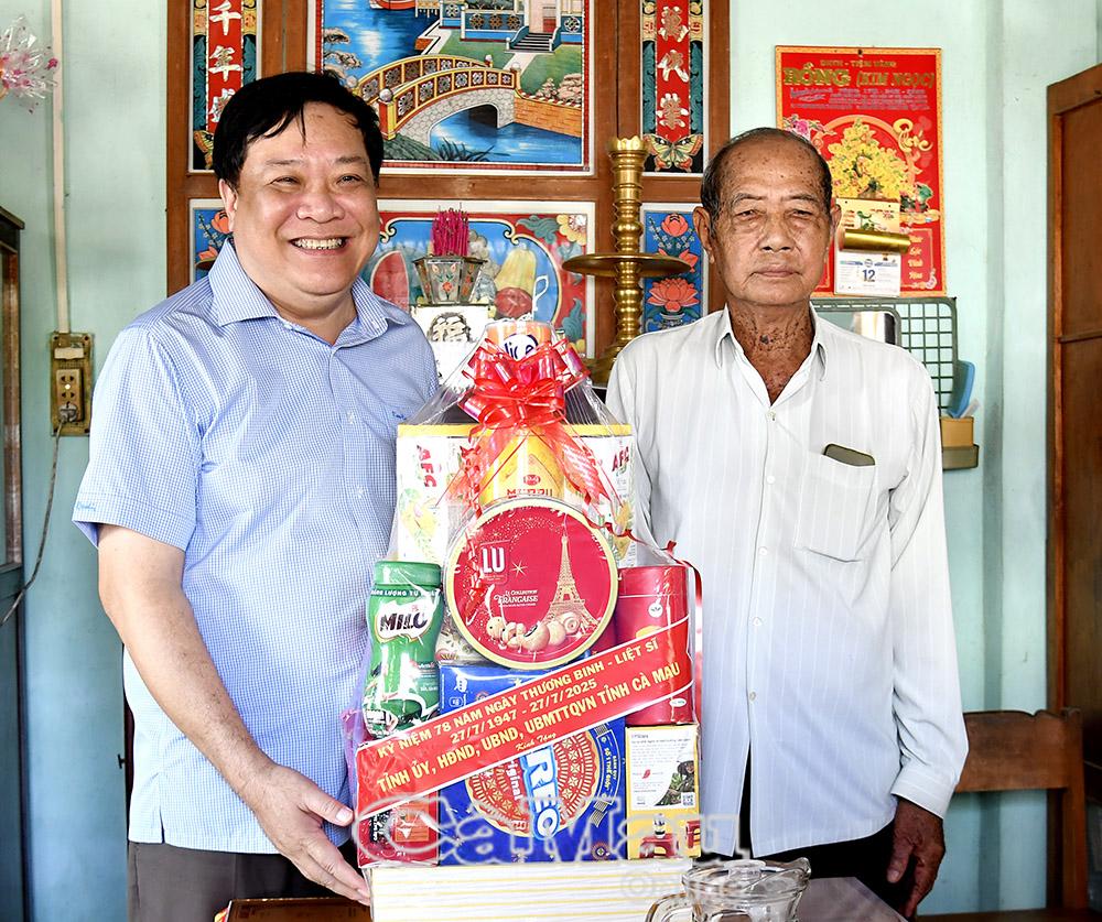 Chủ tịch UBND tỉnh Phạm Thành Ngại thăm, tặng quà gia đình thương binh Nguyễn Văn Sanh.