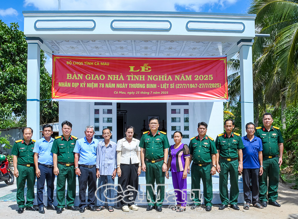 * Cùng ngày, Bộ Chỉ huy Quân sự (CHQS) tỉnh Cà Mau tổ chức bàn giao nhà tình nghĩa cho bà Nguyễn Yến Nhi, xã Long Điền, tỉnh Cà Mau. Căn nhà có diện tích gần 100 m2, được xây dựng cơ bản, với tổng kinh phí gần 200 triệu đồng. Trong đó, Bộ CHQS tỉnh Cà Mau và Công ty xổ số kiến thiết Bạc Liêu hỗ trợ 80 triệu đồng, số tiền còn lại do gia đình đóng góp.
