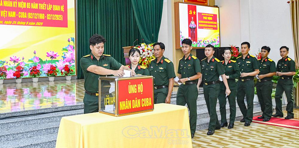 Cán bộ Bộ CHQS tỉnh Cà Mau tham gia ủng hộ Nhân dân Cuba.