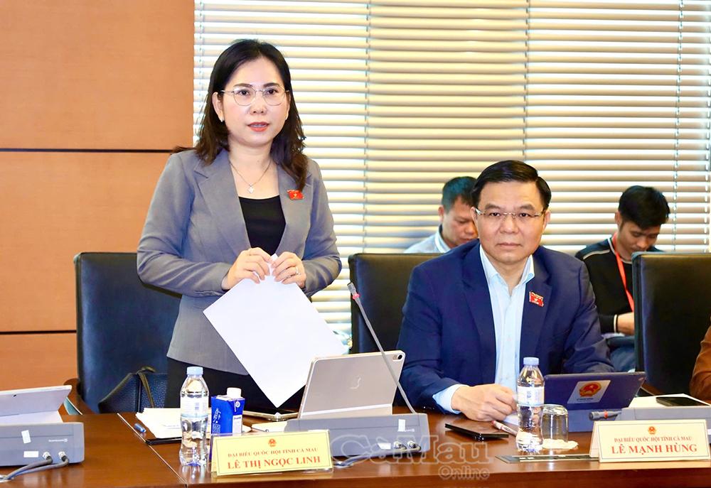 Thảo luận về chính sách giáo dục, đại biểu Lê Thị Ngọc Linh, Phó Chủ tịch UBMTTQ Việt Nam tỉnh Cà Mau, Chủ tịch Hội Liên hiệp Phụ nữ tỉnh nhấn mạnh tầm quan trọng của Nghị quyết 71-NQ/TW trong bối cảnh giáo dục phải cạnh tranh về nhân lực chất lượng cao và chuyển đổi số mạnh mẽ.