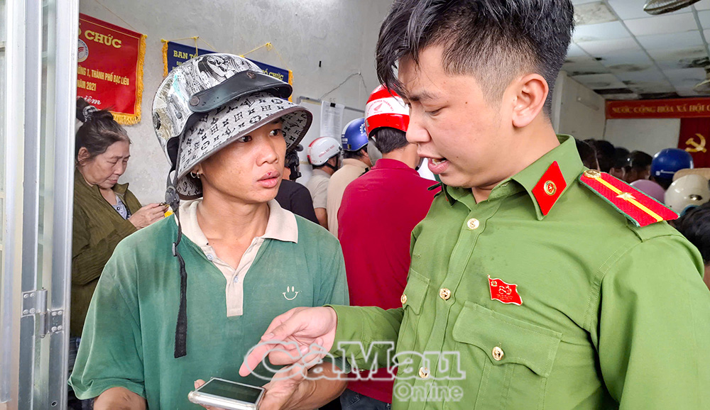Cán bộ phường Bạc Liêu tại tổ số 3 làm việc hết công suất để người dân nhanh chóng được nhận quà.