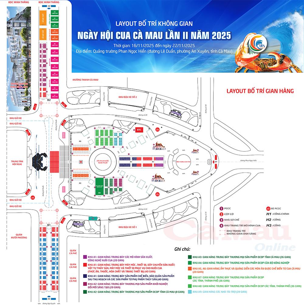Phối cảnh không gian tổ Ngày hội Cua Cà Mau lần thứ II, năm 2025