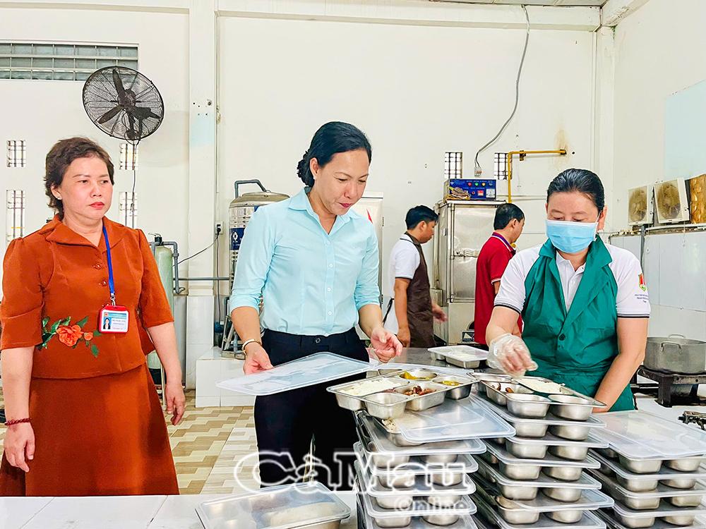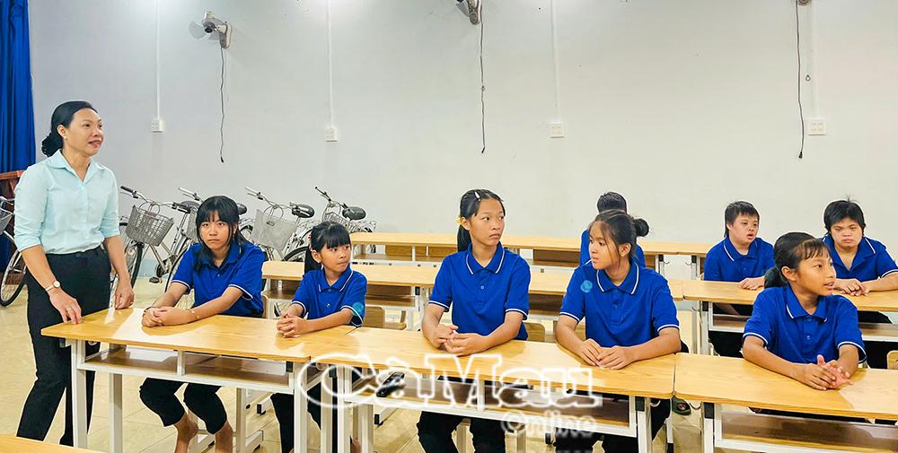 Bà Trần Thị Huỳnh Dao, Trưởng Ban Văn hoá - Xã hội, khảo sát hoạt động dạy nghề tại Trung tâm Nuôi dưỡng người tâm thần Cà Mau.