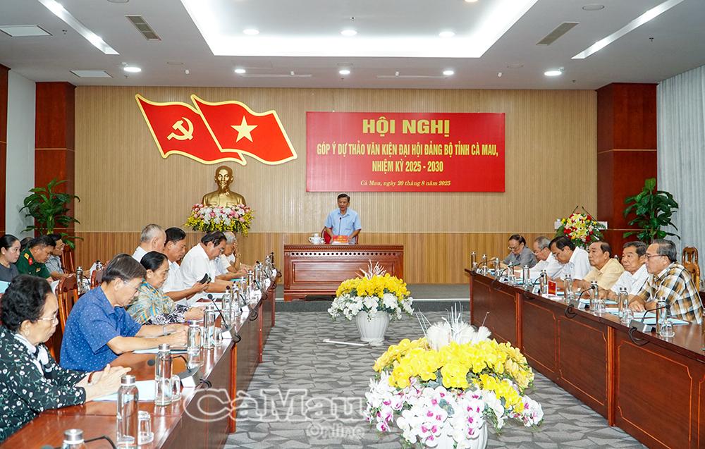 Nhiều ý kiến của các đồng chí nguyên lãnh đạo tỉnh tập trung vào các nội dung cốt lõi, quan trọng của dự thảo văn kiện trình Đại hội Đảng bộ tỉnh khoá mới gồm: vấn đề xây dựng, chỉnh đốn Đảng và hệ thống chính trị; công tác cán bộ; công tác tận dụng, khơi thông, bứt phá các thế mạnh kinh tế trụ cột của tỉnh Cà Mau, đặc biệt là các ngành hàng chủ lực như tôm, cua, muối, lĩnh vực du lịch.