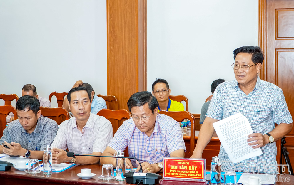 Đồng chí Bùi Tấn Bảy, Uỷ viên Ban Thường vụ Tỉnh uỷ, Phó Chủ tịch HĐND tỉnh, phát biểu tại buổi làm việc.