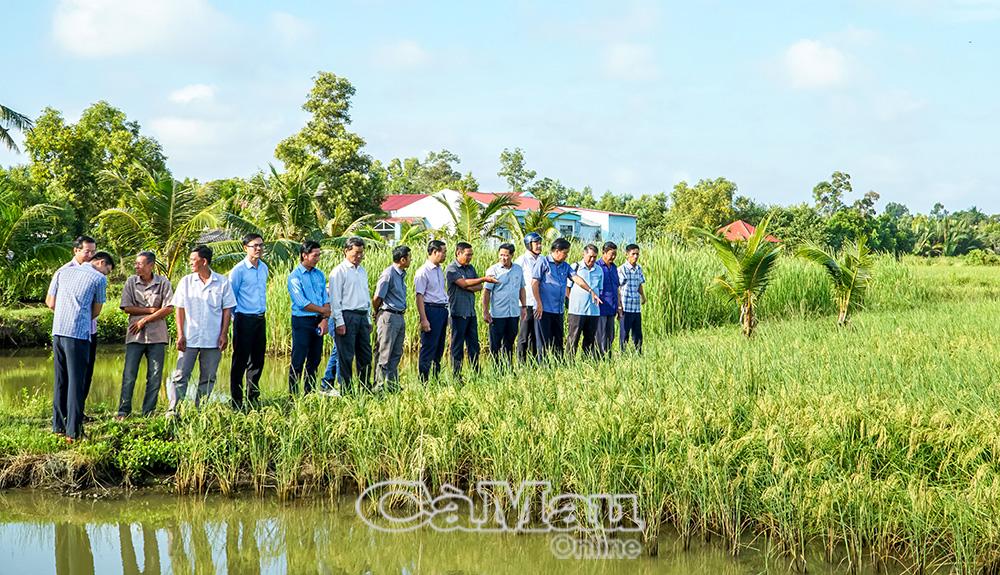 Đoàn công tác khảo sát mô hình lúa áp dụng quy trình sản xuất công nghệ sinh học tại Ấp 1, Xã Hồ Thị Kỷ.
