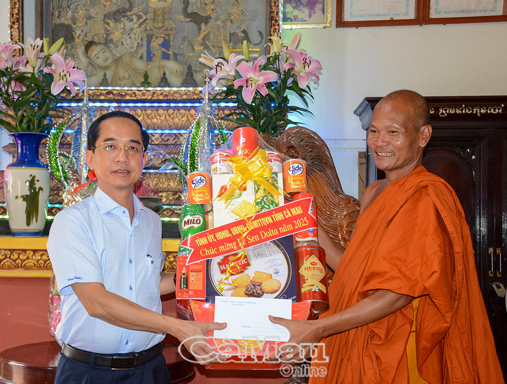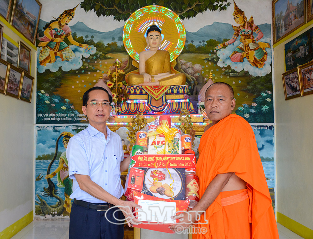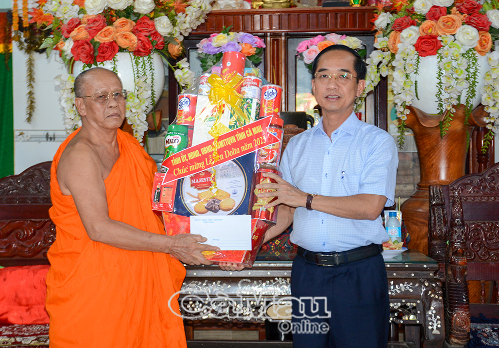 Phó Bí thư Tỉnh uỷ Hồ Thanh Thuỷ thăm, chúc mừng lễ Sene Dolta
