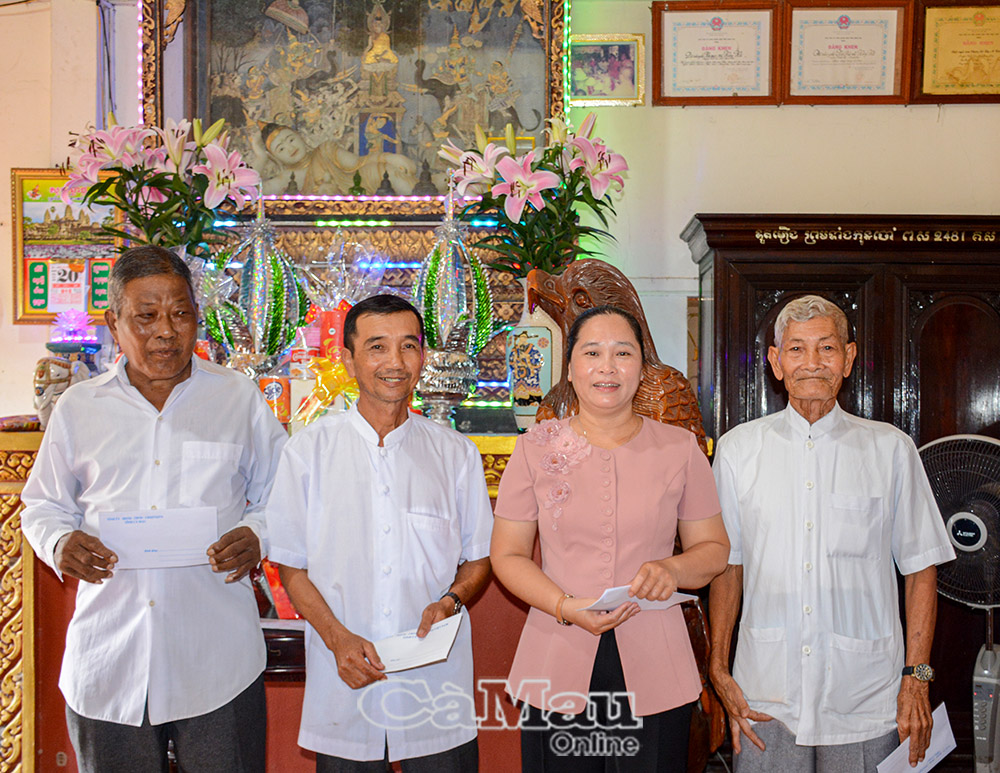 Đồng chí Hồ Thanh Thuỷ chúc mừng lễ Sene Dolta đến các vị sư, Ban Quản trị, Ban Hoằng pháp Chùa Xiêm Cán.