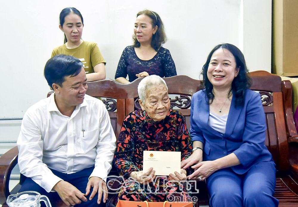 Theo đó, Phó Chủ tịch nước Võ Thị Ánh Xuân và lãnh đạo tỉnh đến thăm, tặng quà Mẹ VNAH Mã Thị Kịch tại ấp Bà Điều và Mẹ VNAH Lê Thị Chi tại Khóm 8 và thương binh Hứa Văn Sử Khóm 4, phường Lý Văn Lâm.
