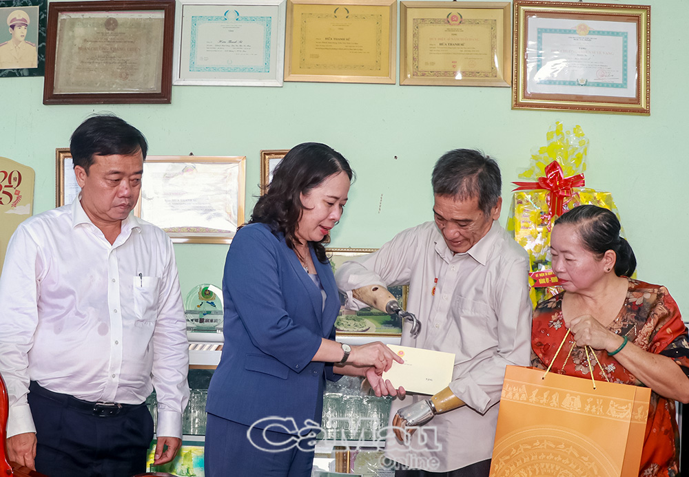Phó Chủ tịch nước Võ Thị Ánh Xuân đến tận nhà thăm, động viên và gửi lời tri ân đến thương binh Đặng Minh Thới.