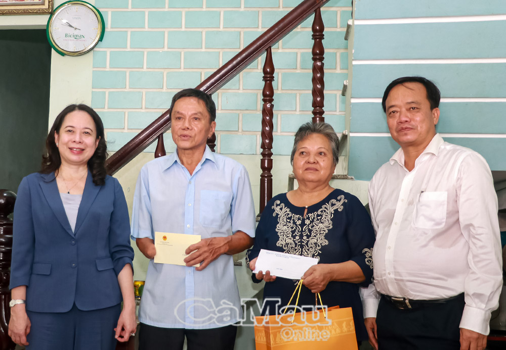 Phó Chủ tịch nước Võ Thị Ánh Xuân cùng lãnh đạo tỉnh Cà Mau đến phường Tân Thành thăm hỏi, trao quà cho thương binh Huỳnh Văn Trung.